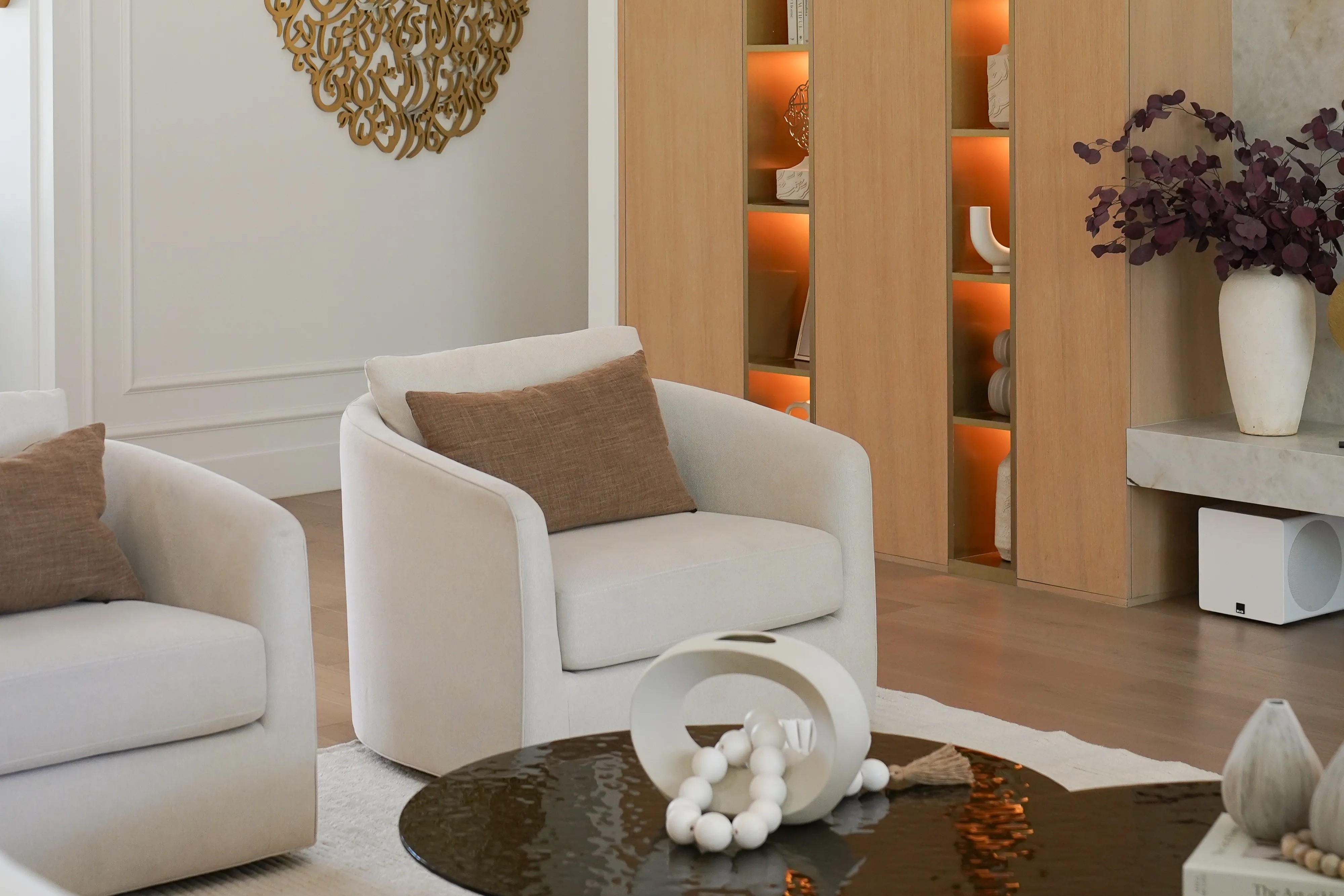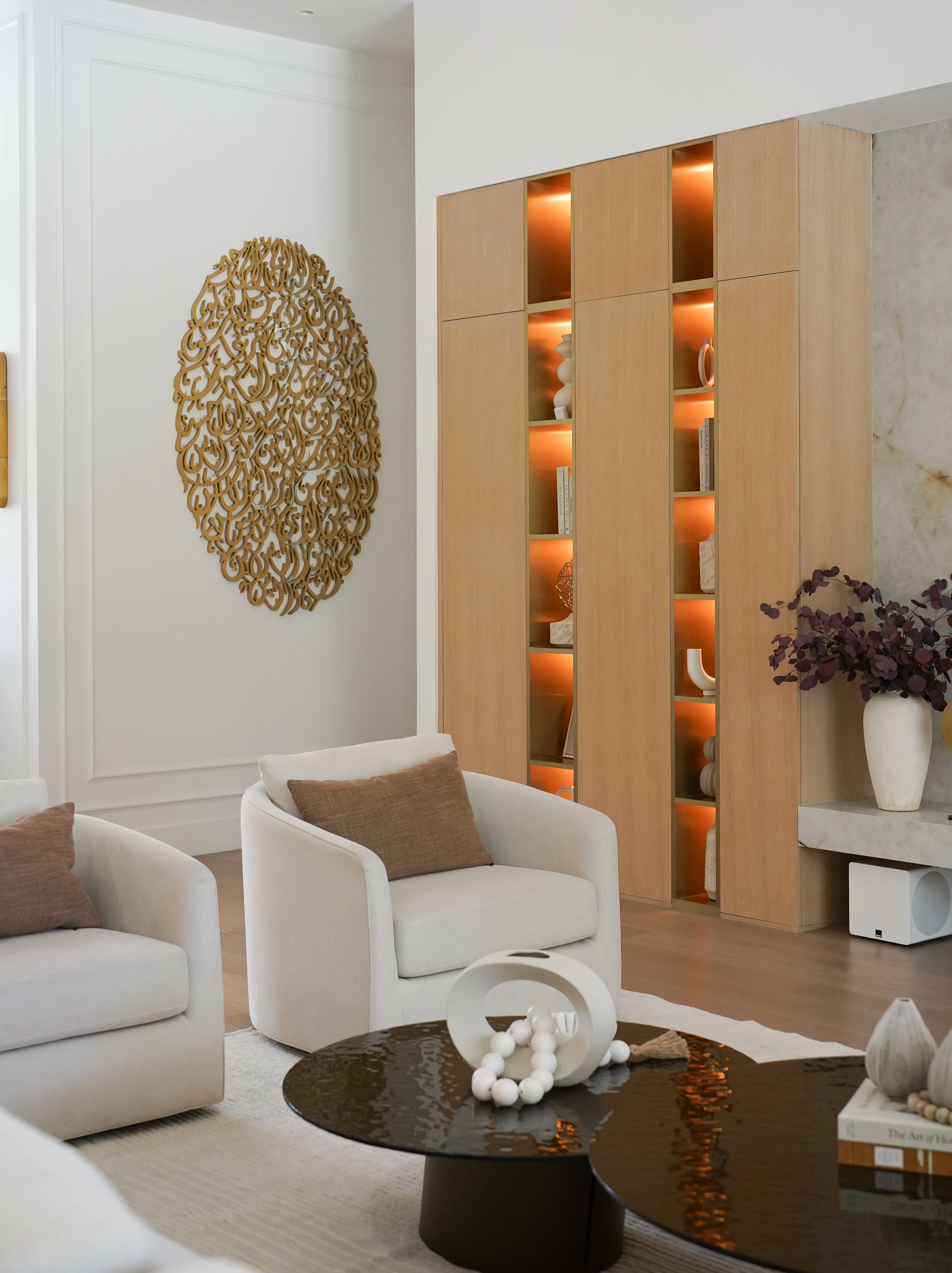 Together, we explored different color palettes, textures, and finishes that would complement the family’s aesthetic. Each decision was made with care to ensure that the space felt both luxurious and livable—where form met function in the most seamless way possible.